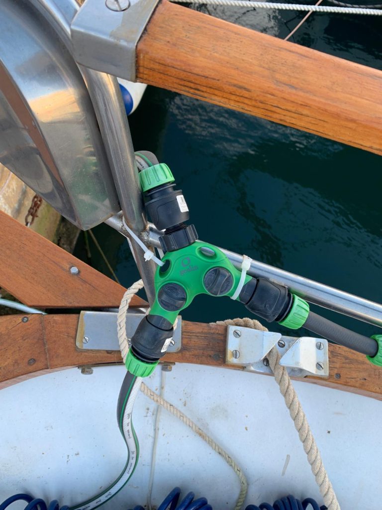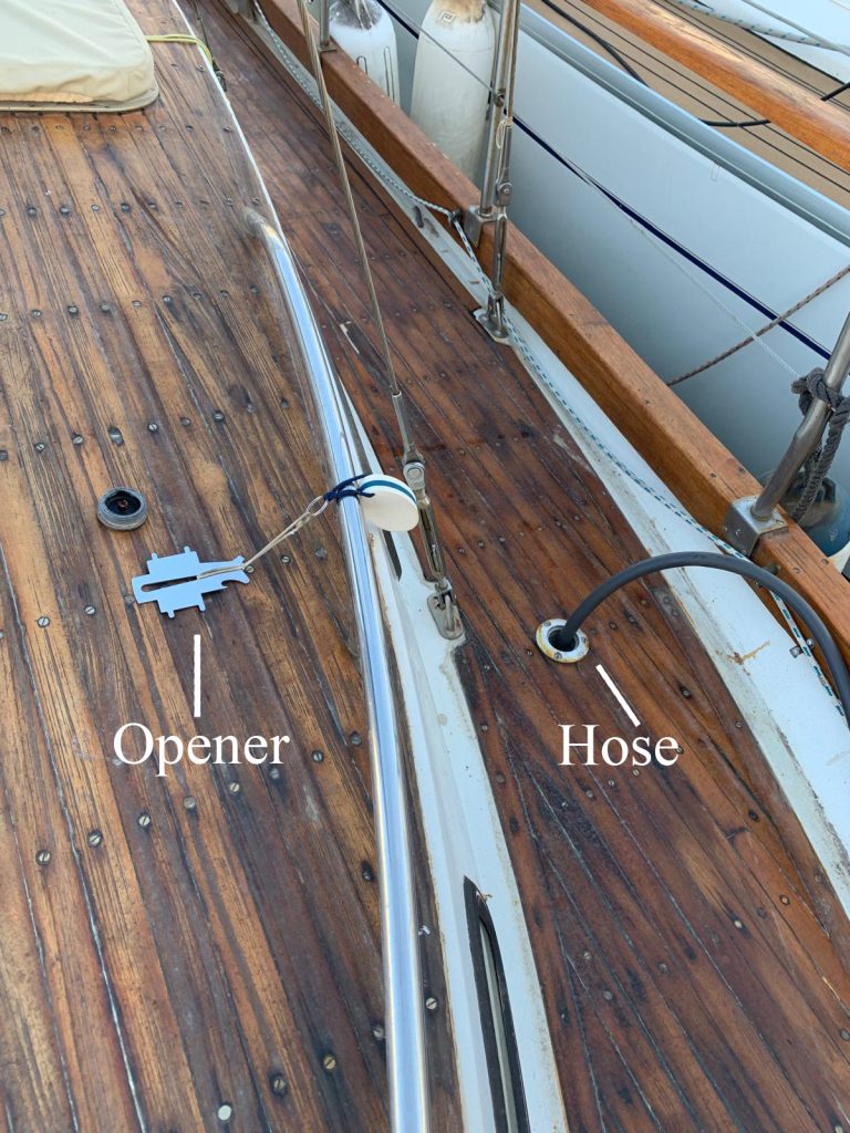You’ll find the hose opener mounted on the wall of the steering cabin—the first cabin you enter—on the left-hand side.